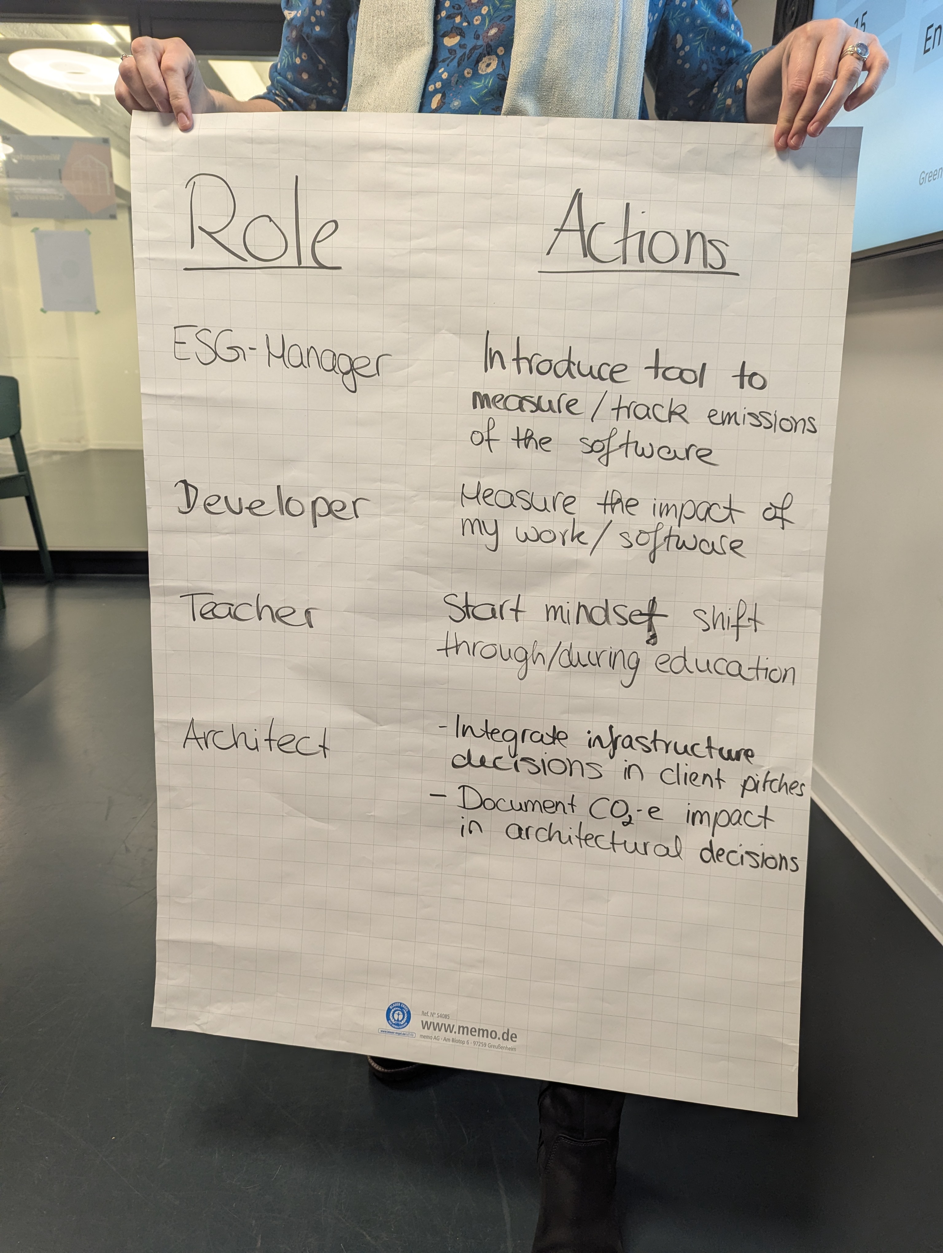 - Role specific actions for developers, architects, Teachers and ESG-Managers